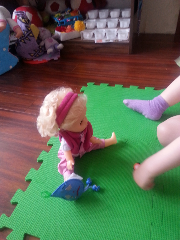 Все это мы проигрывали по ходу моего рассказа. А ситуация, между тем, не придуманная. Дочка действительно всех укладывает спать и обязательно накрывает одеялом. С одеялом у нее какой-то фетиш. Но так как руки еще не ловкие, удачно, по ее мнению, накрыть не всегда получается. И тут начинается концерт, крик и кидание предметов. Именно на этой, достаточно безобидной ситуации, я хотела показать, что такое злость. Сравнение с воздушным шариком, который сдулся, тоже сделала намеренно, чтобы дочка поняла, что как только злость прошла, можно попытаться еще раз.