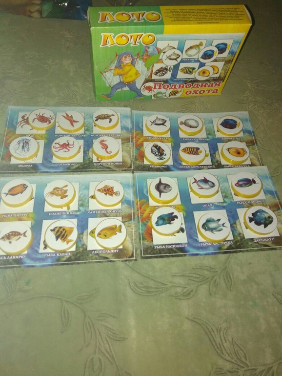 Играли в лото. Купила новое, Слава его ещё не видела. Оказалось, что несколько экзотических рыб дочь знает (спасибо занятиям по карточкам ). Показала мне сразу рыбу-луну, рыбу-хирурга, рыбу-собаку…