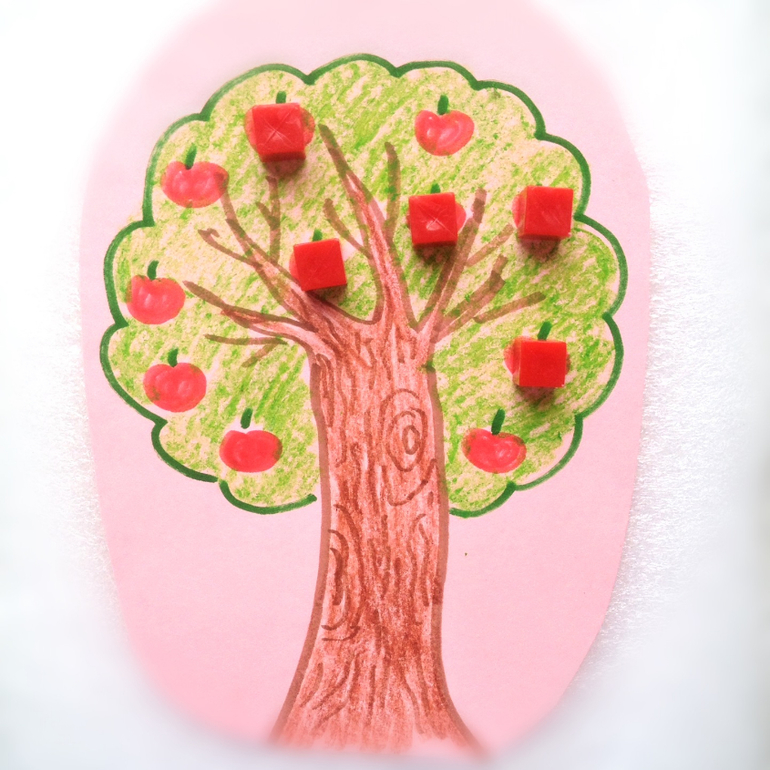 В волшебном саду созрели яблоки. Втыкаем в каждое яблочко кнопки.