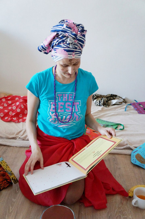 В сумерках, под отблески костра, африканки обратились к гаданию религии Ифе. Главная гадалка разложила гадательные принадлежности и всем ответила на вопросы об их будущем. "Подарят ли мне куклу-невесту?" Спрашивает Джумамоши и кидает кости.