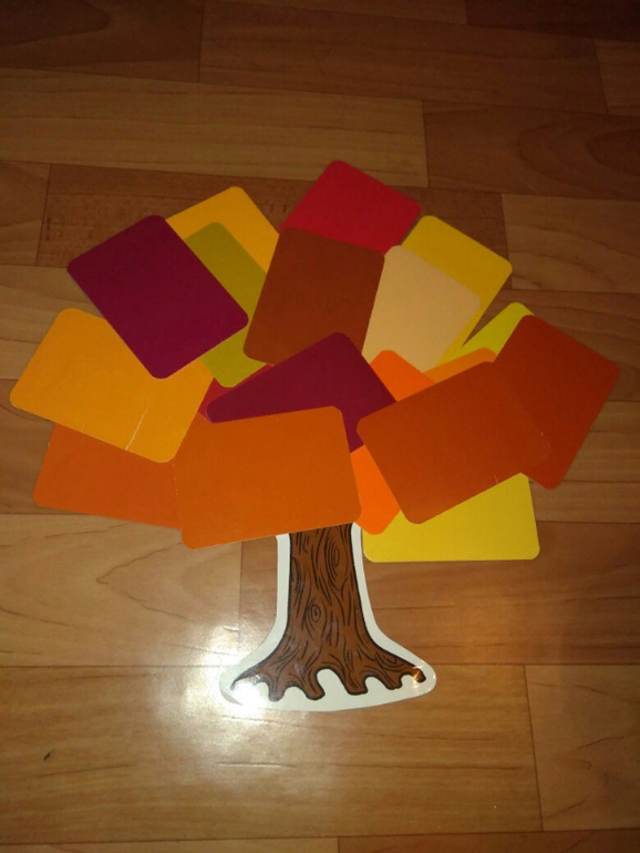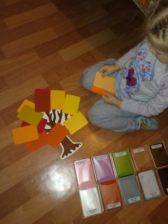 Еще делали осеннее дерево с помощью арт-конструктора и карточек-оттенков из, повторяли их названия. Раньше после занятий всегда приходилось самой разбирать карточки по соответствующим ячейкам в органайзере, а сейчас малышка получает како-то особое удовольствие раскладывая карточки по местам) Мама счастлива))))