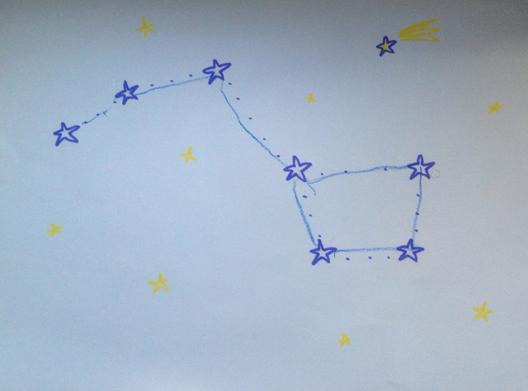 Вечером сидим на площадке и изучаем осенние звезды. А дома вспоминаем созвездия. Соединяем по точкам Большую медведицу.