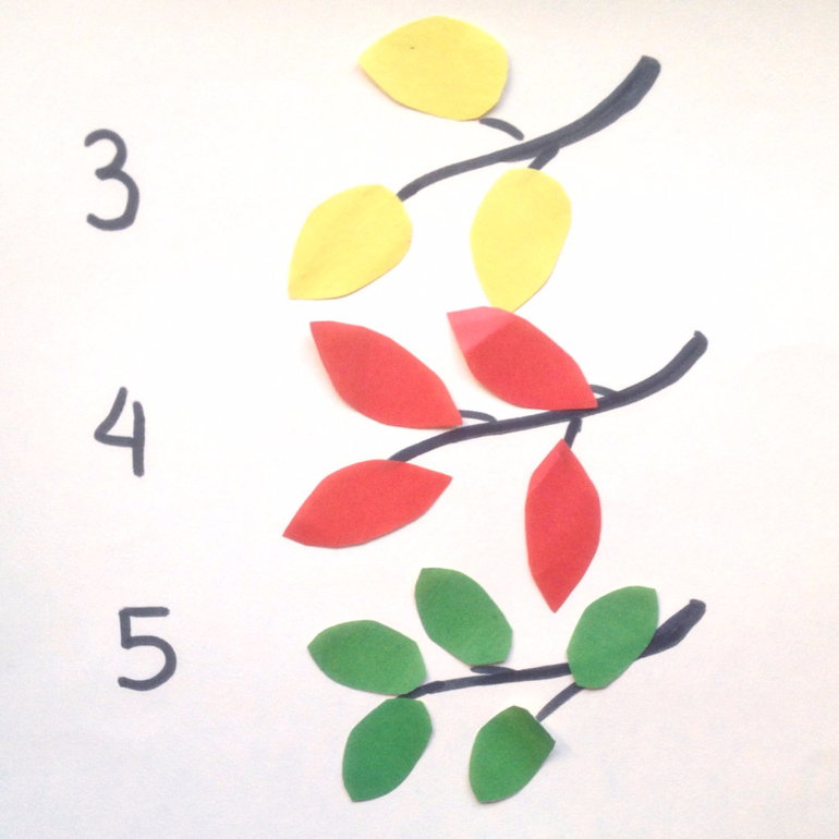 Тренируем счет. Клеим листочки в соответствии с цифрой.