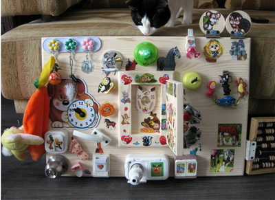Развивающие игрушки своими рукамиПрекрасная развивающая доска - подарок от бабушки и дяди 🙂