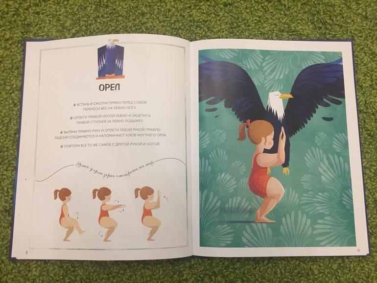 Эта книга дала некий толчёк для многих наших игр. Мы много занимаемся, читаем, рисуем, клеим, лепим т.е. делаем всё для развития мелкой моторики. А вот с крупной дела обстоят сложнее). Да на прогулках бегаем, прыгаем, играем в мяч. Но это всё не регулярные занятия. И мы начали пробовать играть в Йогу.