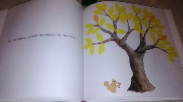 Книга заявлена, как интерактивная. Малышку заинтересовала, ведь здесь не только мама что-то там читает, а и самой можно принять участие в волокитстве. К тому же тема очень полезная для развития ребенка. Можно наглядно показать на примере дерева, как меняются времена года.