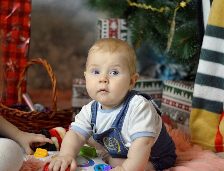 А еще приятность дня: сегодня впервые он сам начал играть в «ку-ку». Я спрашивала, где Гоша, а он прятался за кухонное полотенце, потом резко опускал его и смеялся. Потом сам снова поднимал, прятал лицо и ждал, пока я начну его искать! Вот такая маленькая радость у меня)