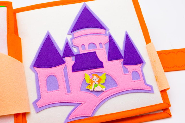 Страница 8. Подарок. Изучаем элемент молния. Внутри подарка на резиночке спряталась конфетка. Ее можно подергать. Бантик съемный.