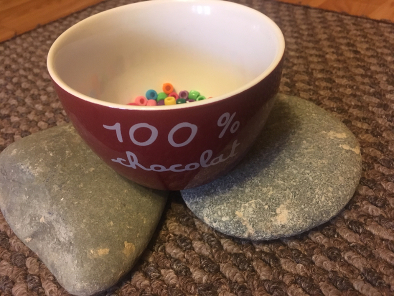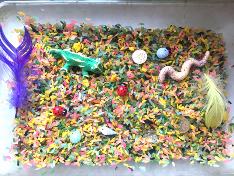 В завершении ждала сенсорная коробочка. В ней нужно было отыскать мелочи, имеющие отношение к индейцам (монетки, ракушки, перышки и т.п.)