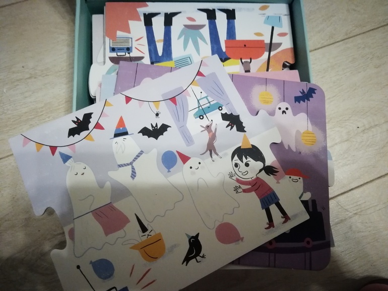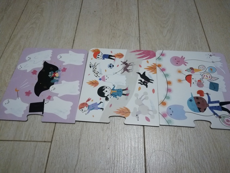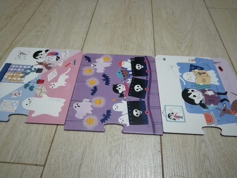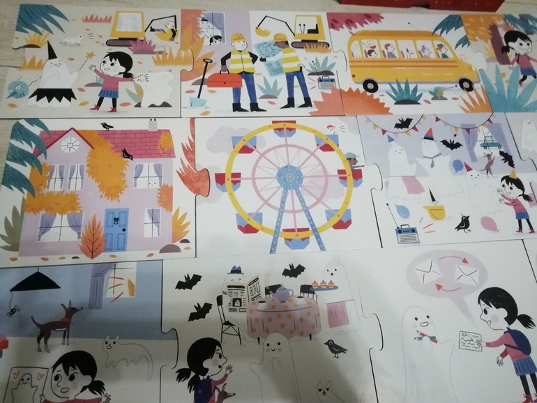 Я считаю эту игру очень полезной для развития речи, развития фантазии и связной речи. Не всем легко удается придумывать истории, поначалу наши сказки состояли из простого описания того, что нарисовано на пазле. Но с каждым новым разом игры сказки становились все длиннее и запутаннее, сюжет становился сложным, а герои приобретали свои характеры. Игру рекомендую с трех лет, хотя даже мне, взрослой тете было интересно поиграть.