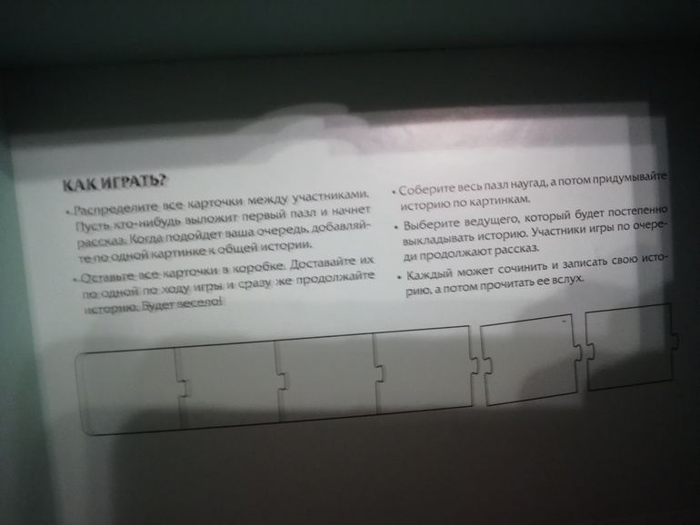 Мы пробовали все варианты, написанные на коробке, особенно детям понравилось придумывать истории, из карточек, которые выбрал для тебя другой игрок. Естественно, что выбирали они друг другу карточки с непохожим сюжетом, от этого становилось еще веселее.