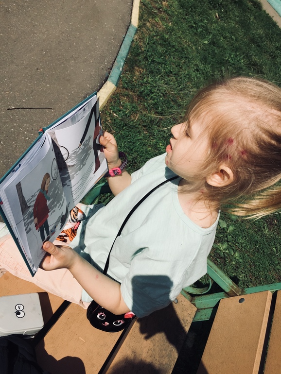 Май в этом году прекрасный, не часто нас так радует погода. Поэтому мы буквально, каждую возможную минутку на улице, и туда-же перенесли все образовательные занятия. Лето и тепло, лучшее время для крупной моторики! Но и про мелкую, книги, рисование стараемся не забывать. Мы стали брать книги и напрогулки, делаем перерыв на перекус и читаем, или делаем упражнения в рабочих тетрадках. Беру небольшие истории, стихи или книги про природу.