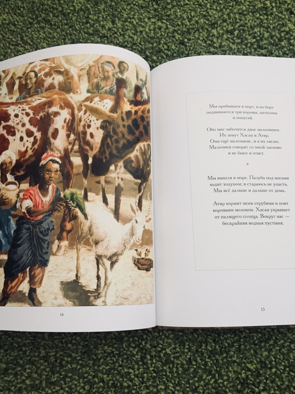 Длинное долгое путешествие ...... читаем по кругу по многу раз, очень тронул рассказ. Жирафа красивейшее и грациозное животное, её путешествие в мир людей полон страхов и сомнений....