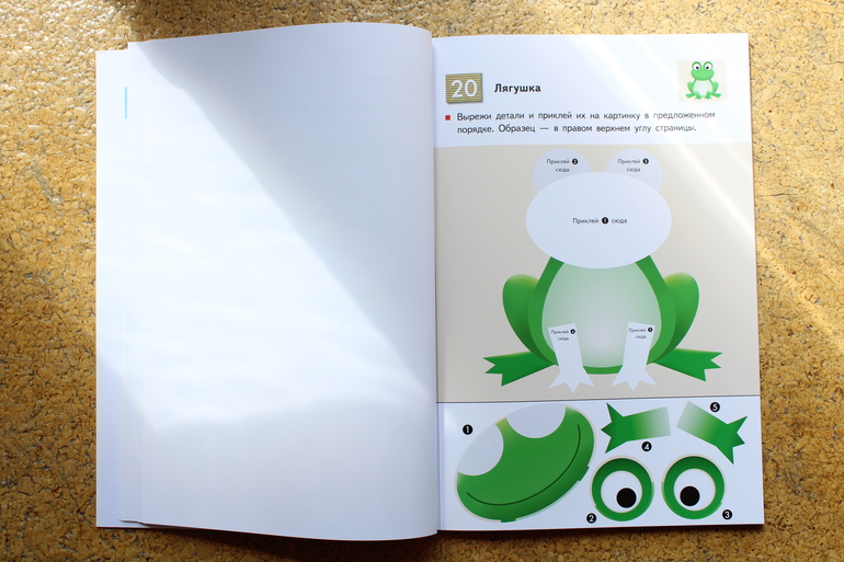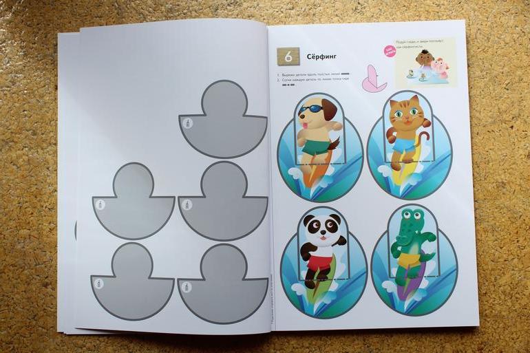 Эта тетрадь также может играть по-разному в руках деток различных возрастов. Изначально подразумевается, что ребенок здесь уже сам всё вырезает и сам всё клеит без помощи взрослого.