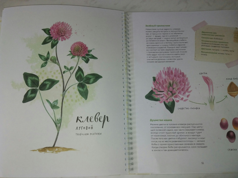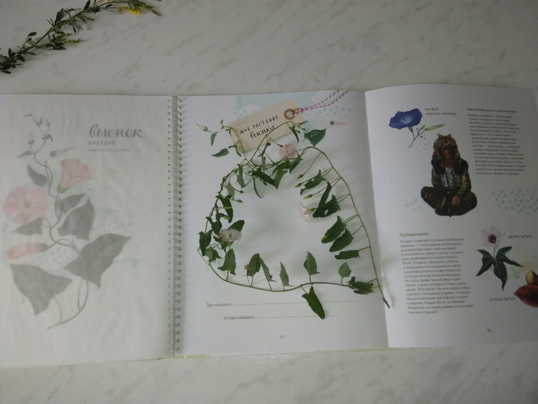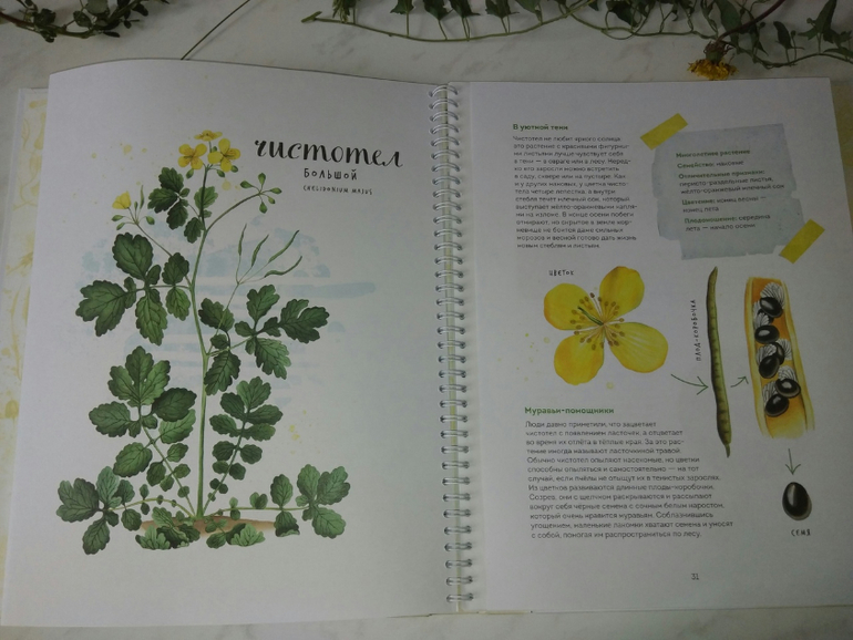«Мой гербарий: цветы и травы». Очень красивая книга-альбом, в которой рассказывается о 16 видах трав средней полосы России. Мы встречаем их по пути от дома до детского сада: ромашка, одуванчик, вьюнок, чистотел, подорожник, крапива и др… и так интересно узнать о каждом из них увлекательны факты. Изюминкой книги является специальная страничка с калькой, где можно сохранить каждое растение. Этот процесс вызывает особый интерес у малышки, с каждым цветком, с каждой травинкой, Славка обращается как с настоящим сокровищем). Из книги можно узнать, как правильно собирать и засушивать растения для гербария, есть идеи поделок из цветов и листьев, информация про виды и строение трав и цветков, описание их значения для природы и человека. А какие нежные акварельные иллюстрации! Просто загляденье. Благодаря таким книгам наше лето становится еще ярче, еще интереснее. Это настоящее счастье, видеть радостный огонек в глазах моей малышки, когда она встречает на прогулке очередной «экспонат» из книги, бежит ко мне и рассказывает, что она нашла тот самый цветок для нашего альбома. Ведь мы договорились собрать все 16 трав до конца лета))) .