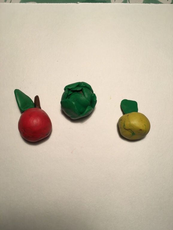 Теперь лепим из пластилина овощи. Кто какие может.