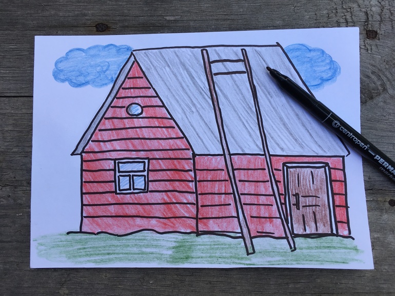 Петсон собирается влезть на крышу, и мы рисуем перекладинки для лестницы