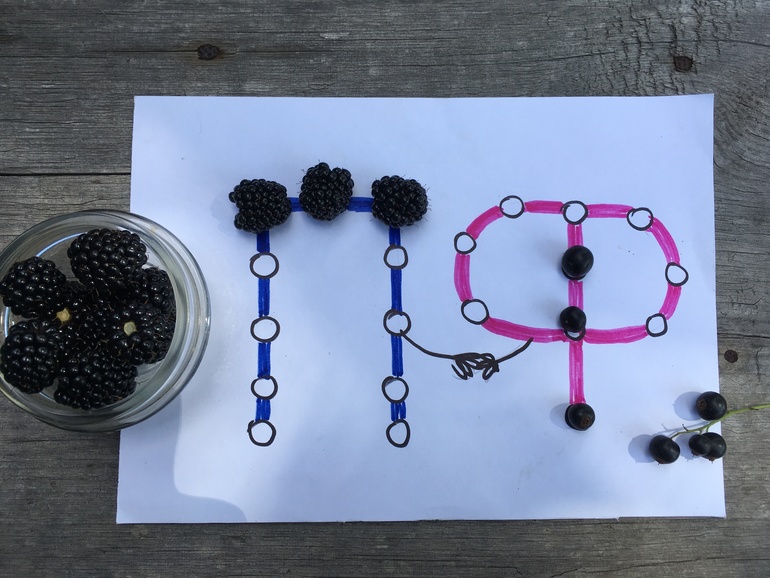 Петсон и Финдус лучшие друзья. Их имена начинаются на П и Ф. Выкладываем ягодками. Ежевика поспела, ммм