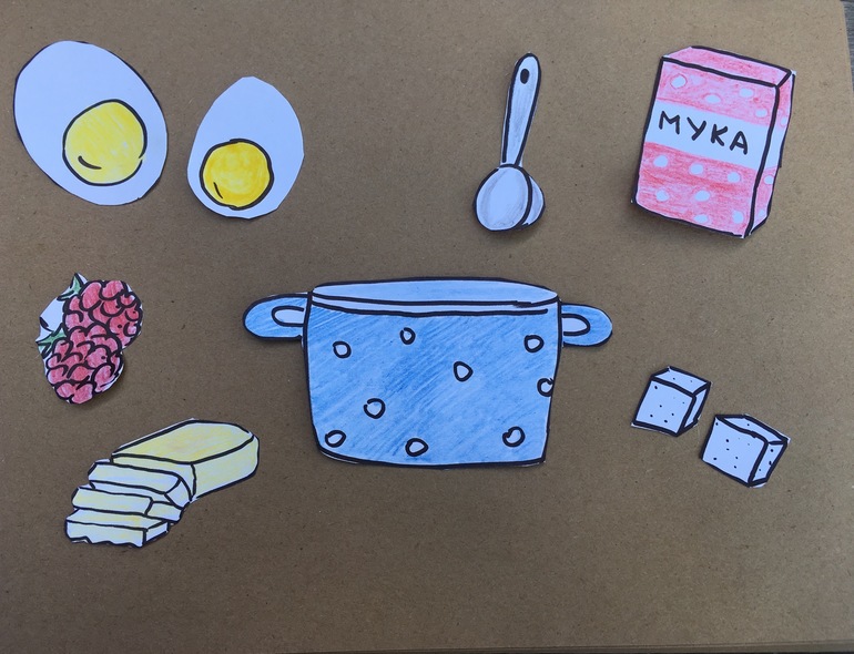 Что нам нужно для пирога? Вспоминаем и делаем аппликацию.