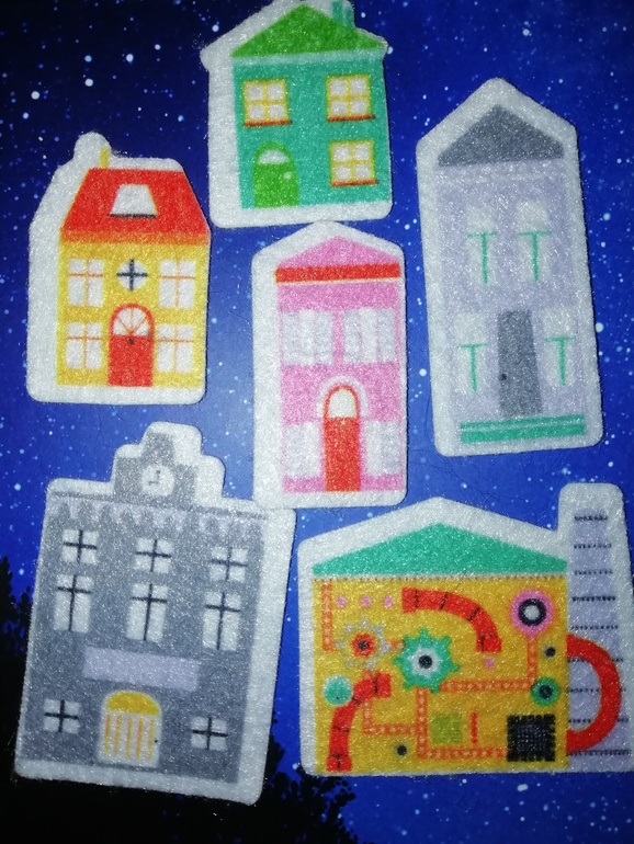 Всего в книге пять разворотов. На каждом развороте немного простенького текста, понятного малышам и задание-положить на страницу определенные детали из войлока. Располагать их можно в любом месте, где захочется ребенку. Детали не сильно толстые и их удобно хватать маленькими пальчиками. Когда кладешь их на страницу, они не падают. Можно не только пальчики развивать, но и воображение, придумывая разные сказки и истории.