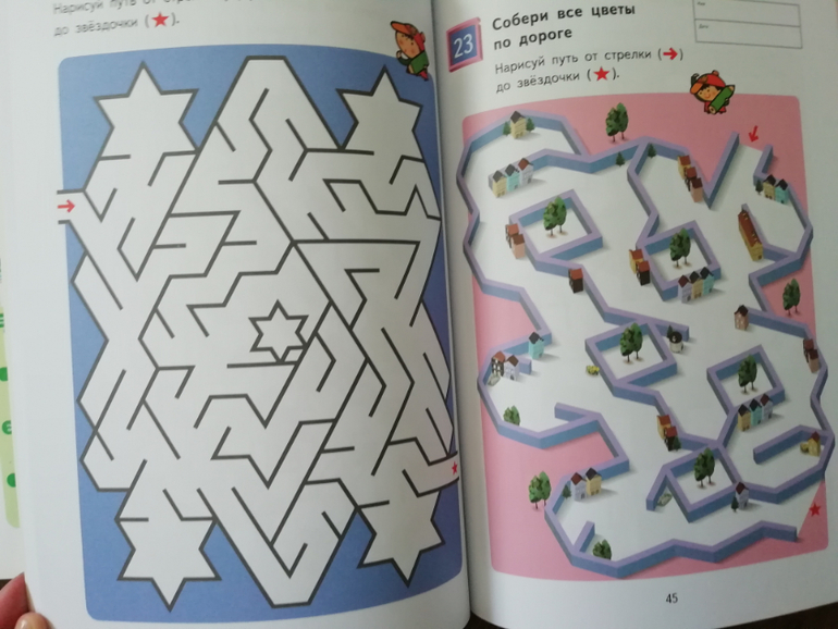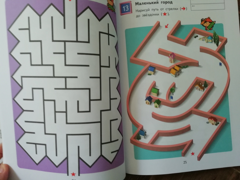 Мне эти тетради нравятся по качеству, они довольно толстые и с разными уровнями сложности заданий. Каждая тетрадь отрабатывает один навык, поэтому если это Лабиринты, то в ней будут только лабиринты, разные, но только лабиринты, других заданий в ней вы не найдете.