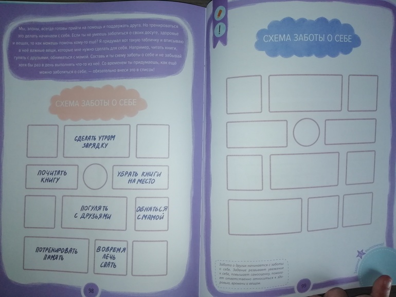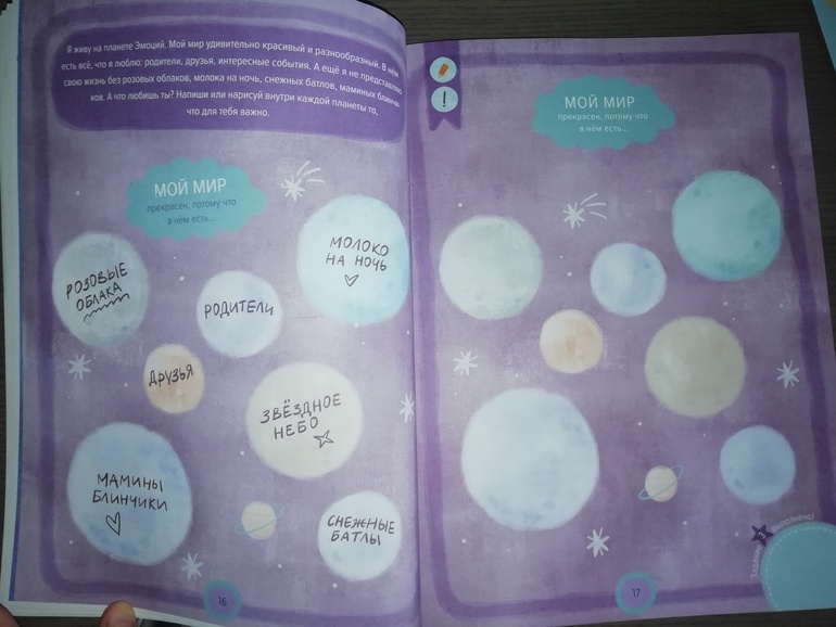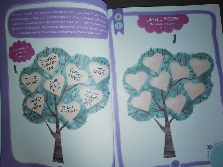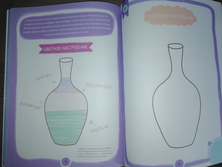Примеры заданий на фото ниже. Нам очень понравилось заниматься по этой книге, дочка стала лучше понимать себя и свои эмоции, а я стала лучше понимать ее.