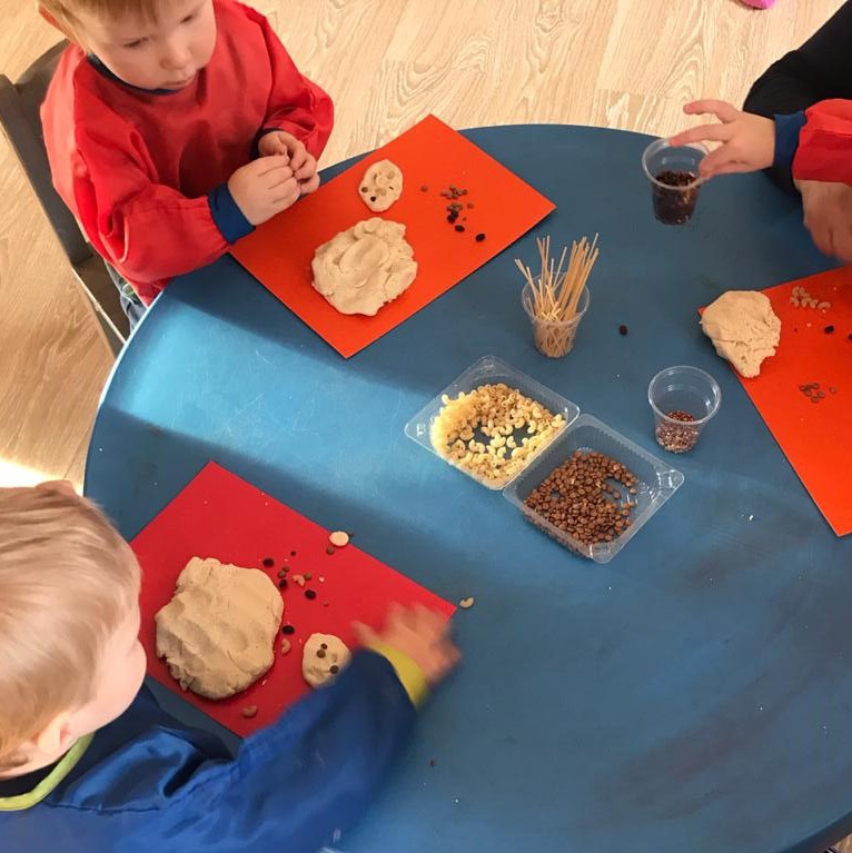 - вдавливать макароны или маленькие фигурки в солёное тесто
