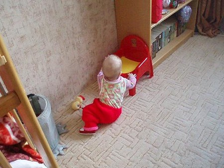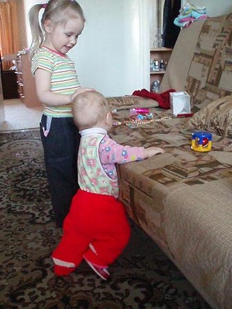 еще Даша смелая у нас она отпускает ручки и стоит пару секунд без поддержки на своих ноженьках!!! в этот момент у меня все в нутри обрывается и я бегу ее спасать, хватать, но никогда не добегаю!!!! она падает и плачет (аяяяяяййййй). и смешно от этого аяяяяй!!! и жалко!