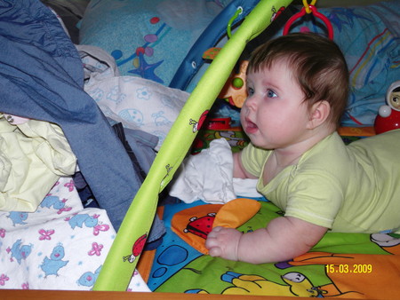 Лен, а у тебя развивиающий коврик где стоит? на полу? не могу разобраться, куда поставить