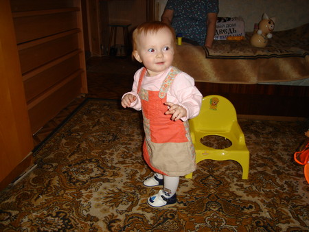 -Привыкаем к горшку. Сикает редко, но помногу, и часто в горшок. Бывает, что за целый день не обписано ни одних штанов, и с ночи памперс часто сухой. Какает, правда, принципиально в штаны.