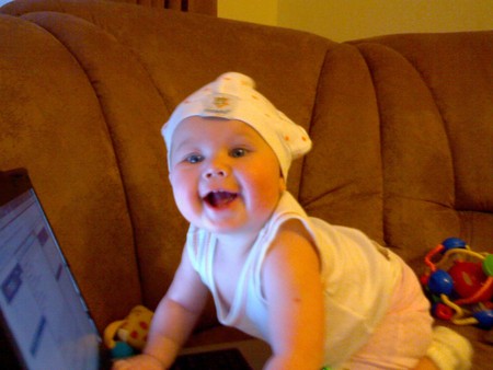 а еще безумно любит стоять на коленках,не держась ни за что, равновесие держит отлично =)))