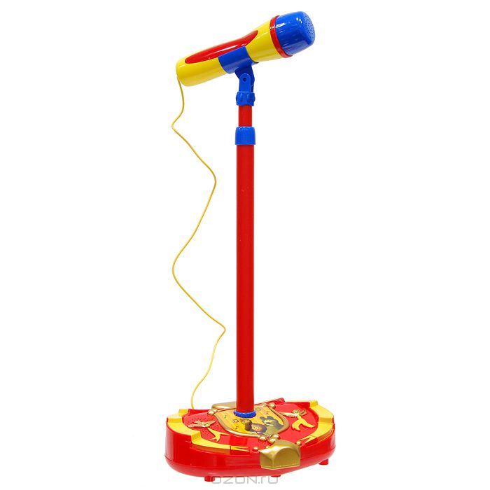 В комплект с микрофоном входит провод и специальная стойка, оснащенная кнопкой включения и выключения микрофона, кнопками включения песен и мелодий, а также регулятором громкости. Наклон и высота стойки регулируется под рост ребенка. По окончанию выступления малыш услышит заслуженные аплодисменты.