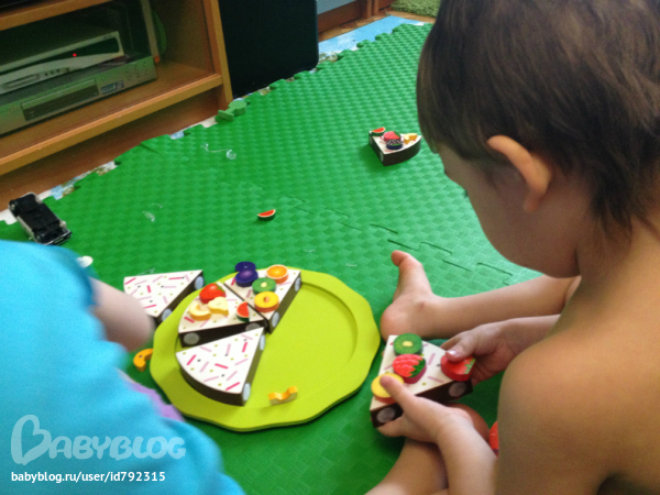 Дети украшали пирог, резали, угощали друг друга и нас (мам) и даже пытались есть )))