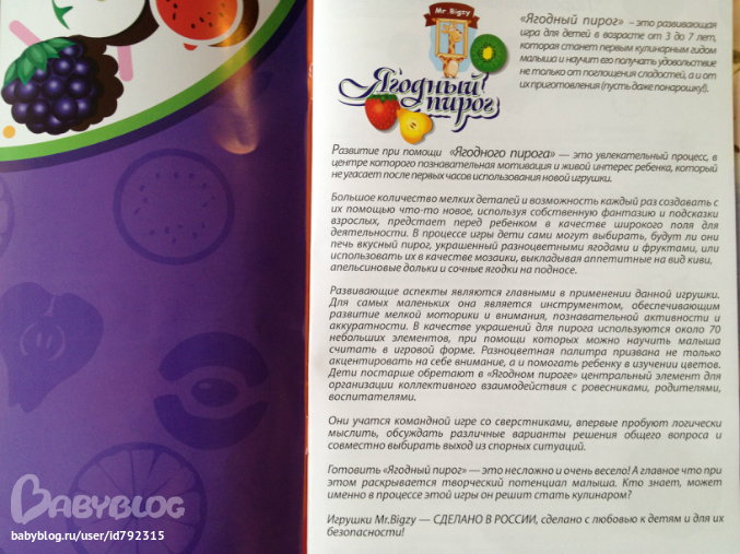 Открыли его первый раз без меня и я даже не знала, что есть инструкция к этой игрушке )) красочная, с заданиями!