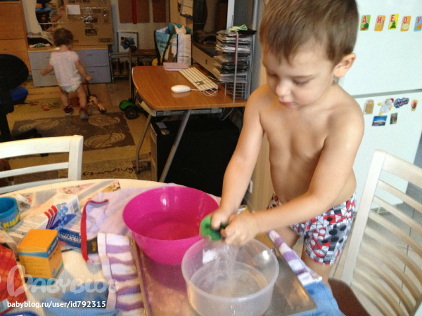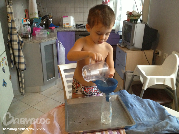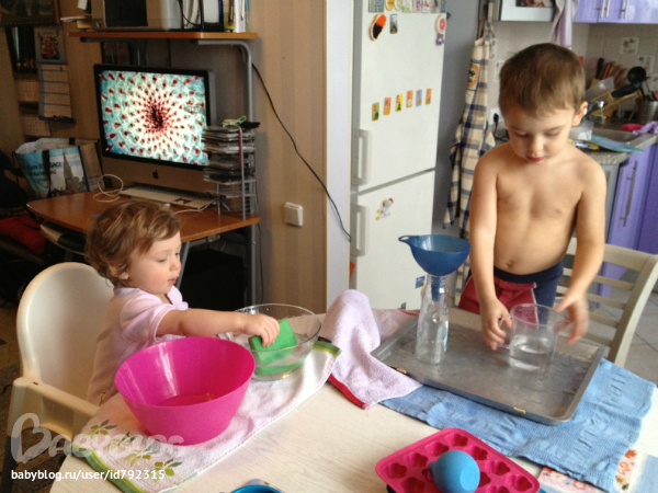 Переливаем половником воду из одной емкости в другую, а потом и без половника ))