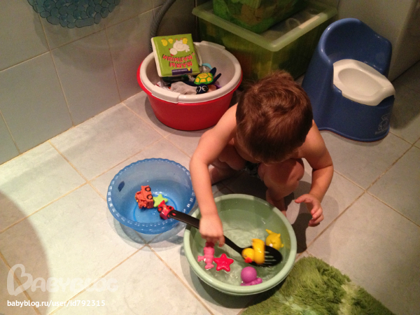 Вылавливаем различные предметы из воды (учим их названия). Это могут быть шарики для сухого бассейна (с ними хорошо учить названия цветов).