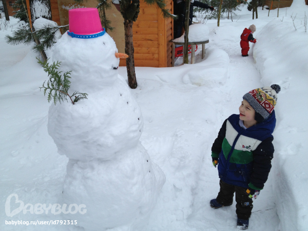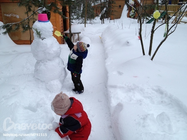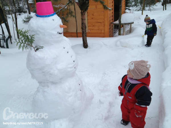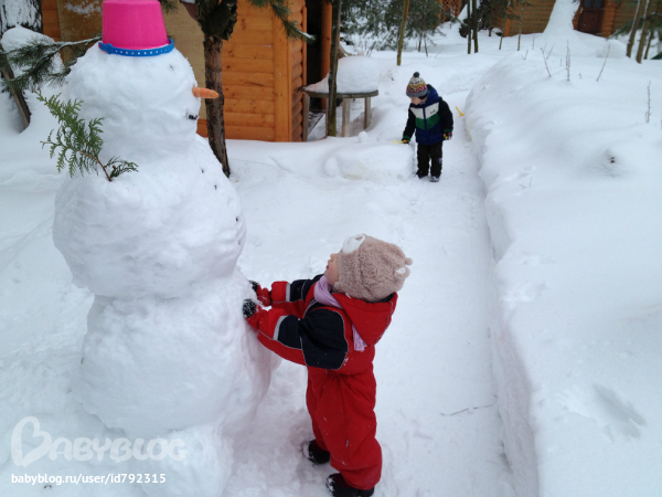 Предложила им слепить снеговика, но они предпочли кататься на горке с папой. Зато мама как в былые годы пыхтела не жалея перчаток и катала снеговика )))