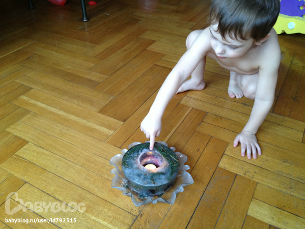 Детям было интересно, но заняло их это ненадолго, так как Аню отгоняли от огня, а без него ей было не так интересно, а Ваня несколько раз потрогав, понял что это мокро и больше дотрагиваться не хотел ))) Взрослые тоже полюбовались )) Красота, конечно!