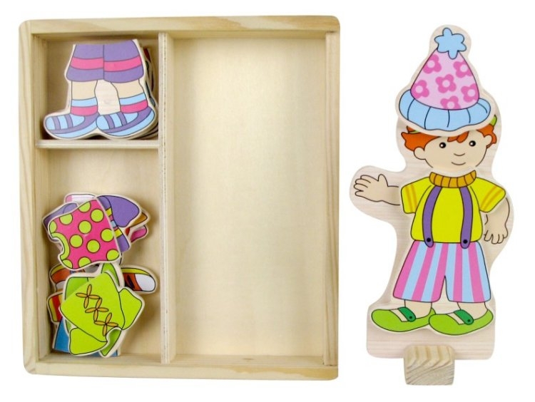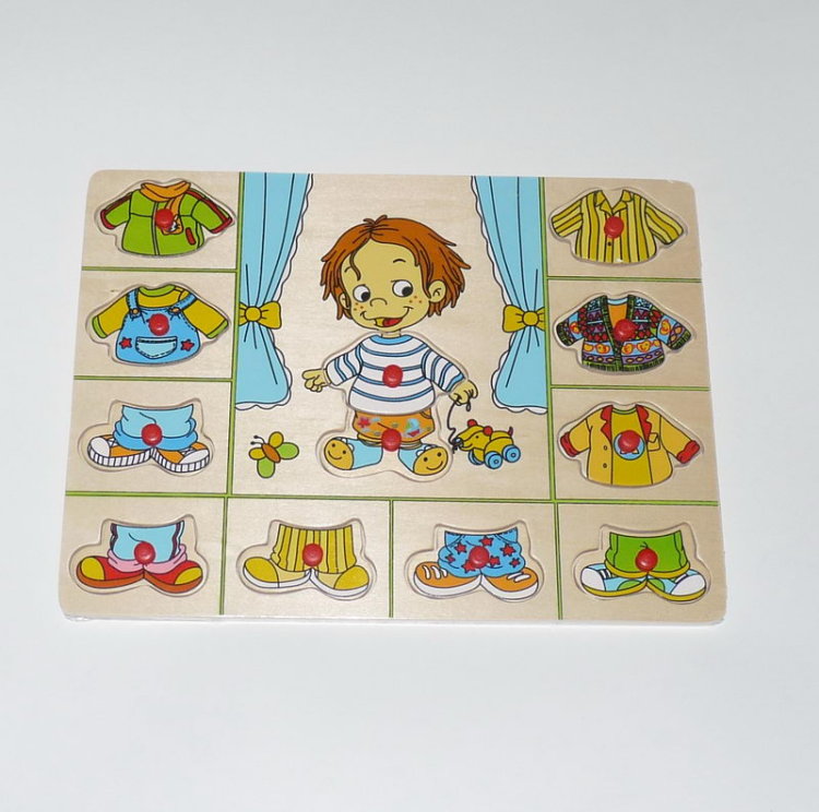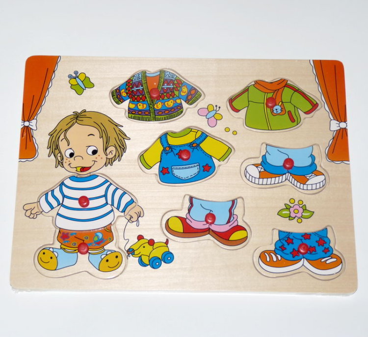 Выбор развивающих игрушек!1. Деревянный пазл с изображением мальчика и одежды. Можно менять одежду (на подложке).