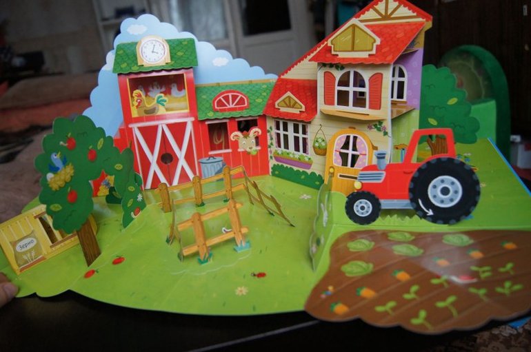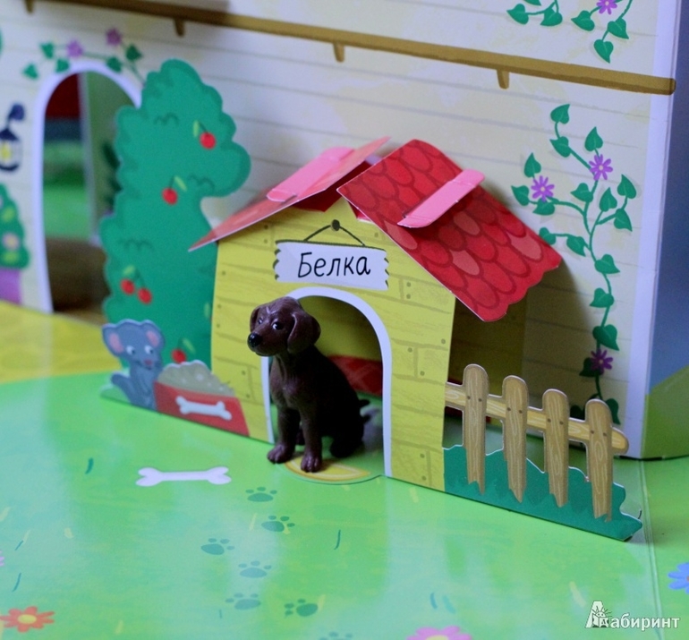 Развивающий материал (полезные развивающие игрушки)Данная книга будет интересна не только детям, но и взрослым. В ней много красочных картинок, игрушки для игры и настоящая деревня. Деревенский дом объемный, животные могут жить в нем с двух сторон. Детям будет интересно узнать где же живут деревенские , дворовые животные и как же называются их дома. С помощью фигурок можно разыгрывать не только сценки, но и целые занимательные истории.