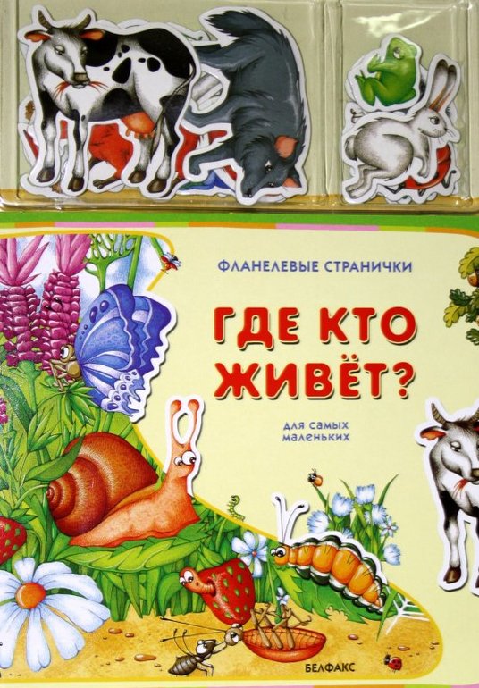Развивающий материал (полезные развивающие игрушки)Много нового и интересного обещает рассказать эта книга и свои обещания, по моему мнению, она выполняет. Ребенок с ее помощью может узнать, кто живет в лесу, на лугу, на ферме и в пруду. На развороте книги на одной странице нарисованы обитатели этих мест, а на соседнюю фланелевую страничку ребенок может сам прикрепить любое животное или насекомое в зависимости от места его обитания.