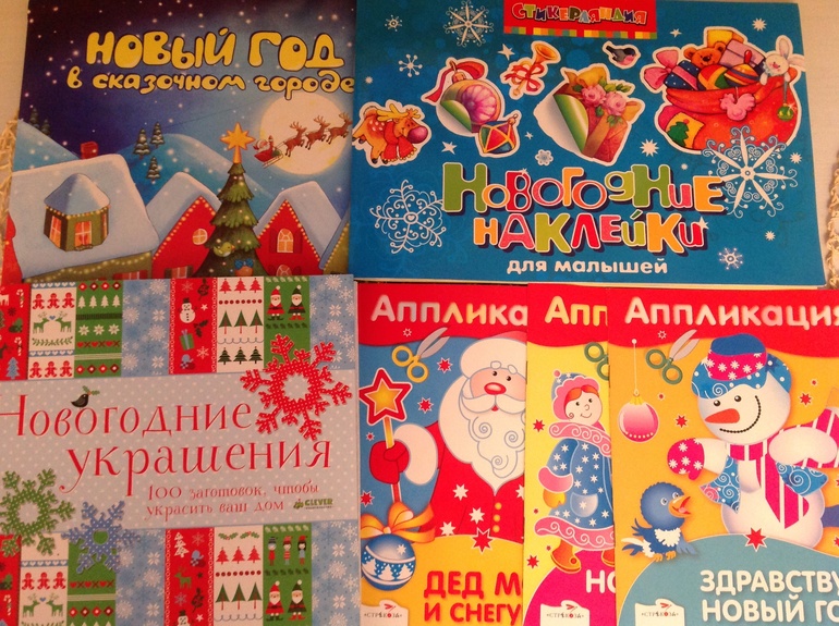 Книга представляет собой скрепленные под одной обложкой материалы и заготовки для различных новогодних украшений - флажки, гирлянды, звезды, ангелы, снежинки. Конечно она рассчитана на детей постарше, но я ее купила для нас, чтоб украсить дом, наделать поделок в сад. Ребенок обычно сидит рядом и режет . Это у нас болезнь сейчас такая, выдам ему пару листочков:) книги хватит не на один год.