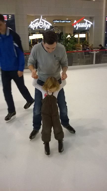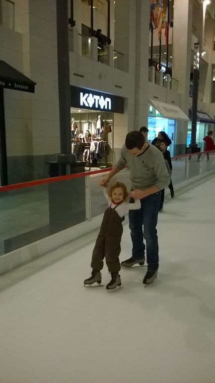 Физическое развитиеПопросили у бабушки коньки на НГ. Пока тренируемся. Ребенок в восторге.