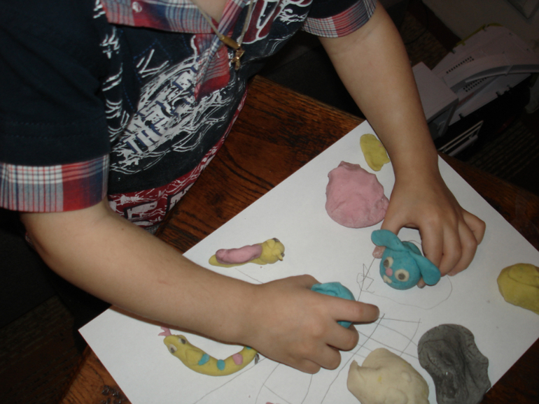 а потом Тимуру как всегда надоело и он остался наедине с пластилином и вот что получилось)))