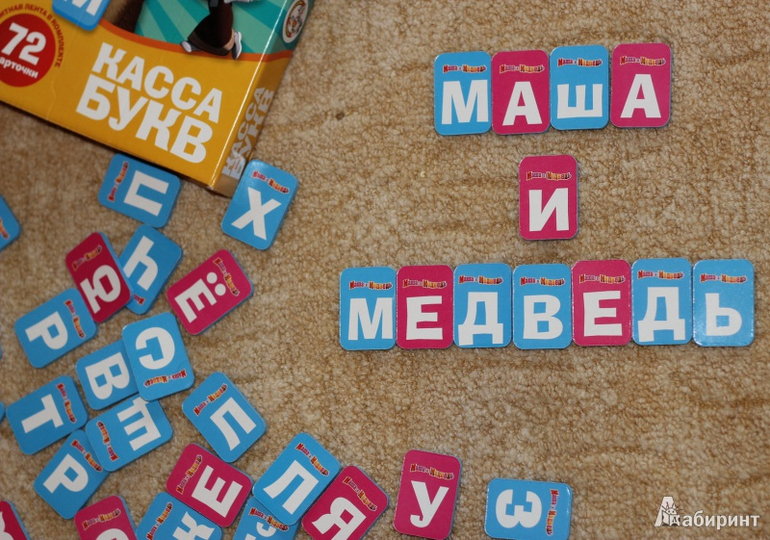 Касса хорошая,для малышей очень удобна,мягкие,без углов,но один минус,мало магнитной ленты,на все буквы не хватает.