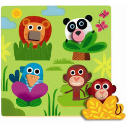 Может сложить лото из 12 картинок. Знает как подбирать вторую половинку из пазлов (животные). Иногда прикладывает неправильную половинку, но делает это специально, потому что смотрит на меня и улыбается - типа, посмотри, как забавно, корова с ногами гуся )).