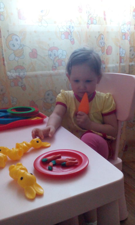 Почистили морковку,сами повели и всех зайчат накормили.