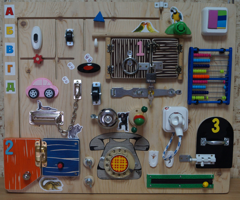 Просто на доске есть опасные элементы вроде шпингалетов и вилок с розетками... Вообще зачем ребенку до трех лет уметь этим пользоваться? Ведь сегодня он тычет вилкой в розетку на доске, а завтра полезет в розетку под напряжением, а послезавтра запрет шпингалетом кошку в шкафу... Не знаю, по мне так это все опасно. В чем такая необходимость включения именно этих элементов в доску?