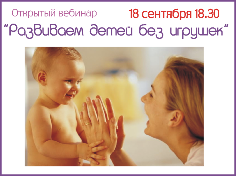 Дорогие мамочки! Уже завтра, 18 сентября, в пятницу, в 18.30 по Москве состоится очередной мой бесплатный вебинар. В этот раз мы поговорим на тему «Как развивать ребёнка без игрушек».