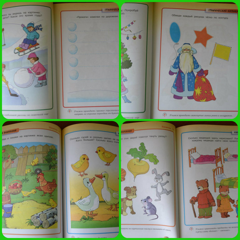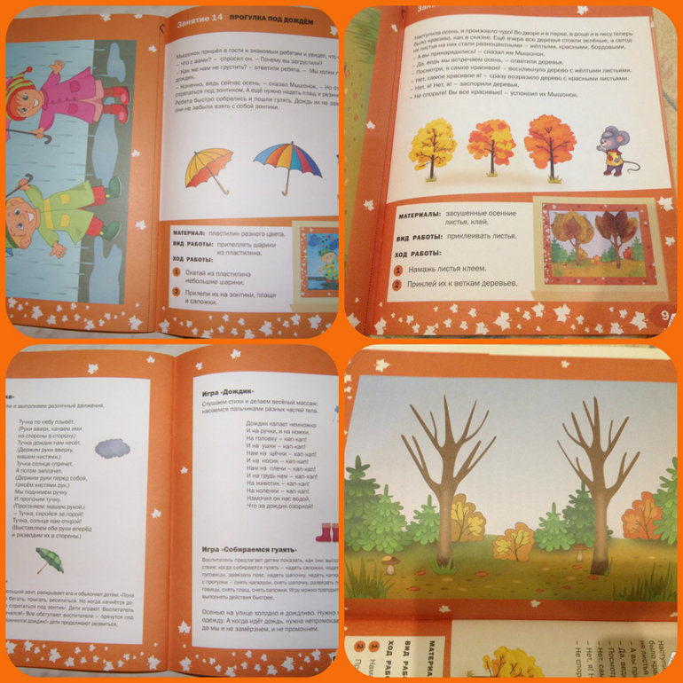Уникальность книги в том, что помимо заданий, типа покажи и расскажи, есть задания на лепку, аппликацию и рисование.
